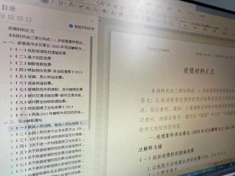为了系统整理刑事法律和司法解释,他参考市面上常见的工具书的体例,先后编纂了200多万字的刑事实体法电子书并逐年更新,100多万字的监察委执法执纪规范大全、70多万字的扫黑除恶规范汇总、800多万字的刑事审判参考案例汇总并及时与全州、全省和全国的众多刑检同仁分享。