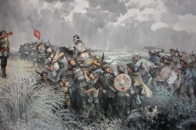 193410月,第五次反围剿战争失败后,中央红军主力被迫撤离江西革命根据地,准备与二、六军团会合,沿途突破敌人四道封锁线,兵力损失五万余人。12月,黎平会议召开后,红军改变会合计划,向贵州腹地进发。19351月,红军攻打娄山关,占领遵义城,召开政治局扩大会议,毛泽东在中央的领导地位也开始确立。会后,红军四渡赤水河、巧渡金沙江、强渡大渡河、翻越夹金山。6月,与红四方面军会合,开始与张国焘的分裂主义作斗争,左路军走过人迹罕至的草地。随后,红一,三军团和军委纵队继续北上,攻克天险腊子口,翻越六盘山,到达吴起镇与陕北红军会师,中央红军长征宣告结束。193610月中国工农红军第一、二、四方面军在甘肃省会宁地区会师,红军宣布长征胜利结束。