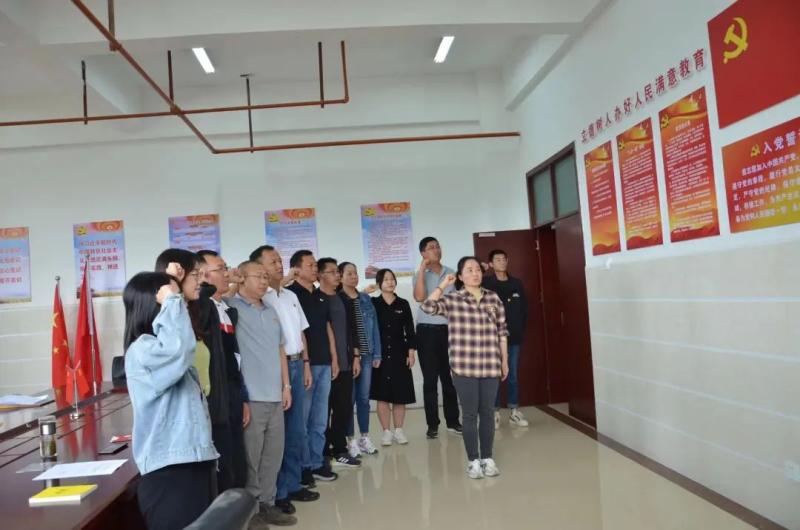 重温一遍入党誓词。9个党支部组织新党员集体宣誓、老党员重温入党誓词,牢记入党宣誓时的庄严承诺,不忘初心,牢记使命。