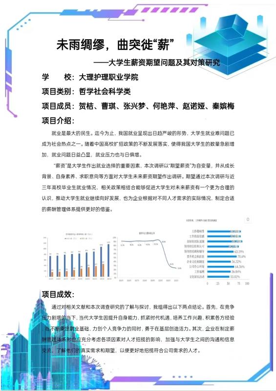 本次竞赛,全校共41个项目团队参赛,200余名学生参加,校团委组织教职工团支部书记及各系团委书记对项目进行评审打分,针对性的提出问题与建议,助力各团队提高作品完整性和质量,增强项目竞争力。其中,有15件作品脱颖而出,并被推荐参加省级竞赛。