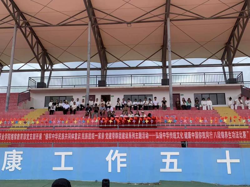 近期,新葡萄奔驰AMG官网继续教育部党支部联合学校多部门,成功开展了“铸牢中华民族共同体意识 民族团结一家亲 党建带群团建设系列主题活动——弘扬中华传统文化 健康中国你我同参与 八段锦养生功法比赛”主题活动。此次活动以八段锦养生功法比赛为依托,旨在全面贯彻落实党的二十大,党的二十届二中全会和党的二十届三中全会精神,充分发挥党建带群团建设的作用,深入开展铸牢中华民族共同体意识教育实践活动,促进民族团结进步,推进和谐美丽清廉校园建设,弘扬中华传统文化,致力于提升学生的文化意识,促进学生的文化自信,培养学生的团队协作精神,激发学生对健身的浓厚兴趣和热情。