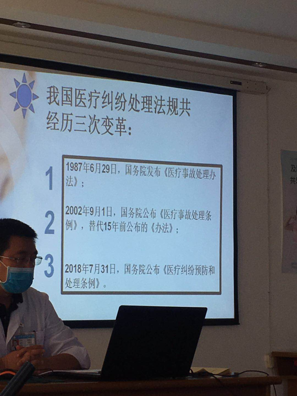 培训会上,党支部书记廖建东带领大家学习了《医疗纠纷预防和处理条例》全文,并就医疗纠纷预防、医疗纠纷处理、法律责任作了生动详细的解读。