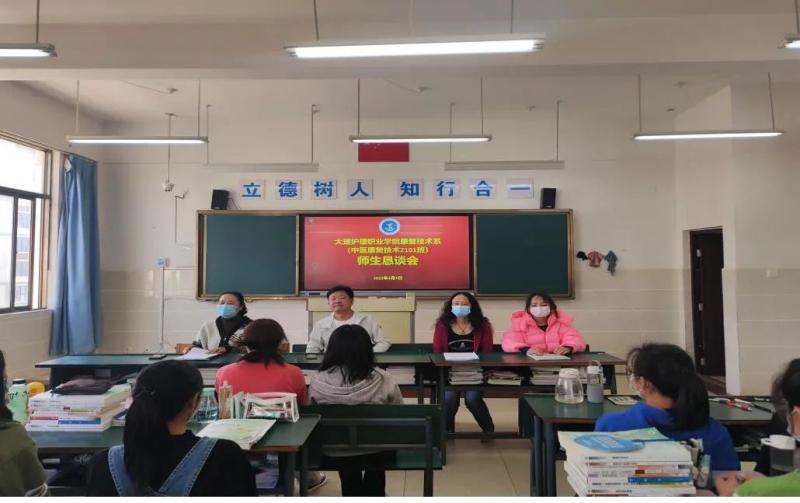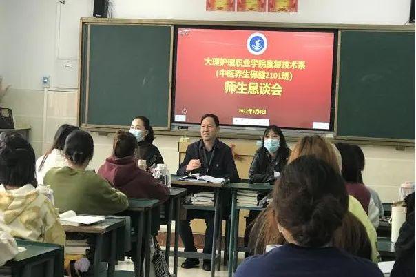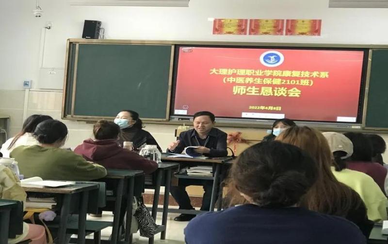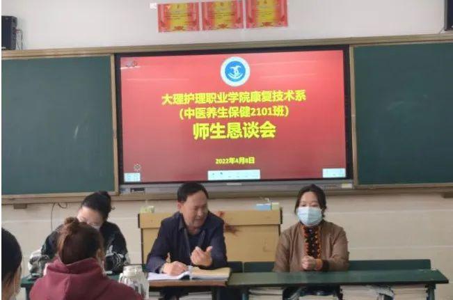 4月8日,字利鹏副书记深入中医养生保健2101班召开师生恳谈会,公共基础部党支部书记钱雪娟,康复技术系党支部书记朱海娟及班主任普晋清老师参加了会议。