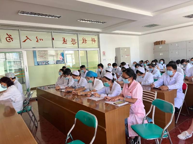 培训会议由门诊部副主任华志贞主持,廖建东副主任针对《新型冠状病毒肺炎防控方案(第九版)》、《关于做好国庆前后和党的二十大期间医疗机构疫情防控工作的通知》等文件要求进行了讲解。要求全体干部职工要认清当下疫情形势,提高警惕,时刻绷紧防疫的这根弦,克服麻痹思想,加强业务知识,熟练掌握新冠防控新操作,规范做好新冠肺炎疫情防控及医疗救治工作,认真排查门诊内部感染风险漏洞,持续强化医院感染管理,落实落细门诊部常态化院感防控各项措施,严防疫情院内感染事件发生。