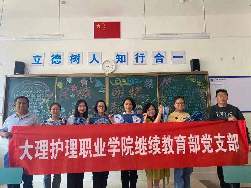 4月19日,学校继续教育部党支部联合继续教育部开展“白族扎染艺术活动你我同参与,民族团结一家亲,共铸中华民族共同体”活动。进一步深入学习贯彻党的二十大精神,弘扬爱国主义和民族团结教育精神,铸牢中华民族共同体意识,增强民族凝聚力和向心力,不断加深各族师生感情,积极营造平等、团结、互助、和谐的良好氛围,构建和谐校园,丰富校园文化生活。