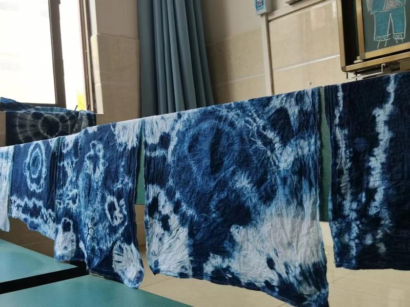 参与此次活动的老师们对全体学生制作的白族扎染作品分别进行了现场评选。评选出一等奖一名、二等奖两名和三等奖三名。