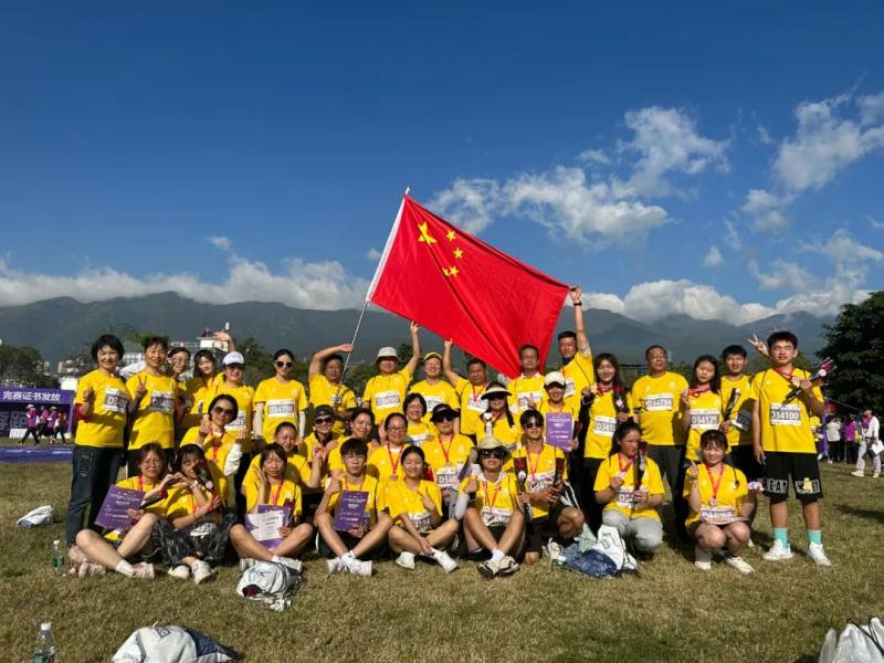 为丰富师生的业余文化生活,倡导积极健康的生活方式,新葡萄奔驰AMG官网由办公室牵头,妇联、团委共同组织师生45人报名参加了此次活动中的“爱的跑跑”5.2公里马拉松比赛。随着清晨7点鸣枪起跑,参赛师生个个精神饱满,热情洋溢,大家凝心聚力、互相帮助、互相鼓励、携手同行,最终全部到达终点,获得了完赛证书和奖牌。参赛师生用坚持与执着展现了拼搏精神,用脚步和汗水丈量了中国最佳爱情表白地大理的文旅事业,展现了学校师生坚持不懈、挑战自我的良好精神风貌。