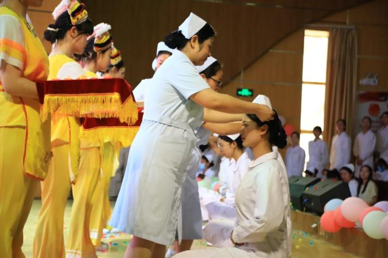 活动中,护理系师生庄严宣誓,重温南丁格尔誓言,立志为人类的健康事业奋斗终生;护理系教师为即将成为健康守护者的白衣天使的学生们授护士帽,传递救死扶伤的大爱精神和责任;学校领导为2023年护理•养老技能大赛获奖学生颁发奖状,鼓励学生们坚定理想信念,努力成为德智体美劳全面发展的社会主义建设者和接班人。