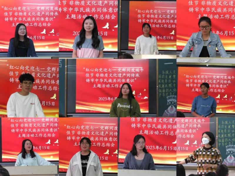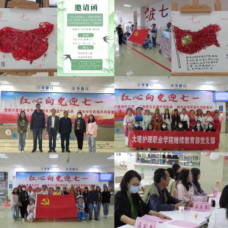 值此端午节、“七一”建党节来临之际,为庆祝中国共产党成立102周年,传承非物质文化遗产,弘扬中华民族优秀传统文化,营造和谐美好的校园文化,6月14日下午,学校继续教育部党支部联谊学校党委组织部、宣传部、统战部、团委、妇联、食堂等部门开展了“红心向党迎七一 党群共度端午节 非物质文化遗产同传承 铸牢中华民族共同体意识”主题党日活动。