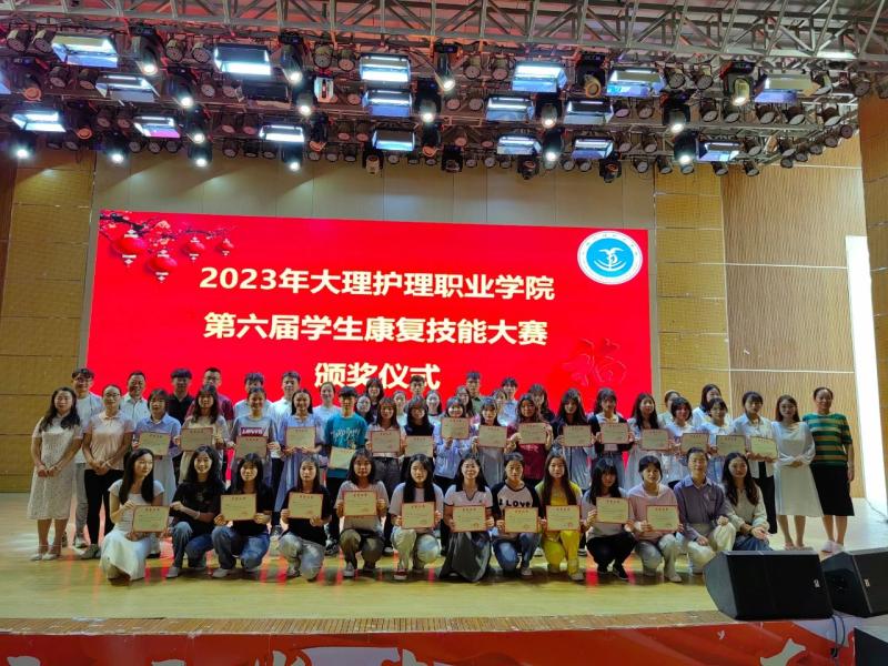学校党委书记廖惠群、康复技术系老师们为第六届学生康复技能大赛获奖的学生颁奖,并激励获奖的选手戒骄戒躁,继续努力学习,积极进取,勇毅前行。