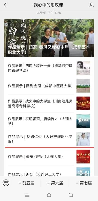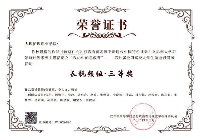 6月9日,在全国高校大学生微电影展示活动“我心中的思政课”官方网站,展出新葡萄奔驰AMG官网荣获教育部组织的习近平新时代中国特色社会主义思想大学习领航计划主题教育活动——第七届全国高校大学生微电影展示活动竞赛三等奖作品《疫路仁心》。