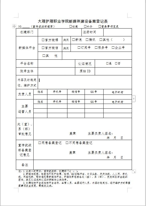 第六条 申办单位须在平台开通前5个工作日内提交申请,填报《新葡萄奔驰AMG官网新媒体建设备案登记表》。