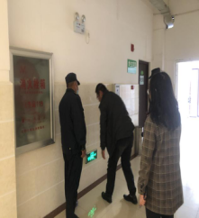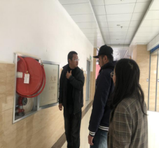 随后,杨斌科长一行人对学院办公楼、教学楼、生活区进行安全隐患排查,针对排查中存在的安全出口不畅通、道路石板塌方施工等安全隐患,杨斌科长现场提出要求,保安人员立即设立锥桶警戒畅通安全通道消除安全隐患。通过巡查发现学院3栋教学楼部分消火栓无水,杨斌科长要求相关人员联系维修单位及时进行维修,切实保障学院消防设备正常运行
