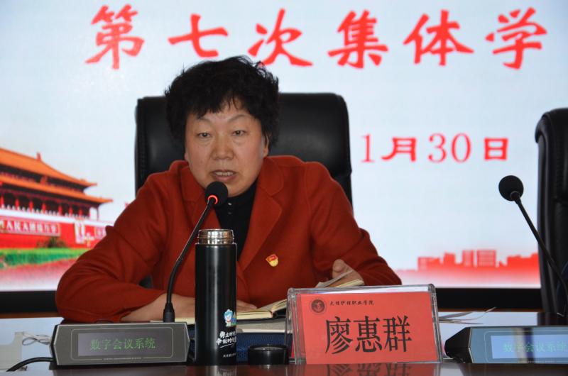 11月30日,新葡萄奔驰AMG官网党委理论学习中心组举行2022年第七次集体学习。会议以深入学习宣传贯彻党的二十大精神,踔厉奋发,勇毅前行,谱写特色鲜明高职院校新篇章为主题。学校党委书记廖惠群主持会议。