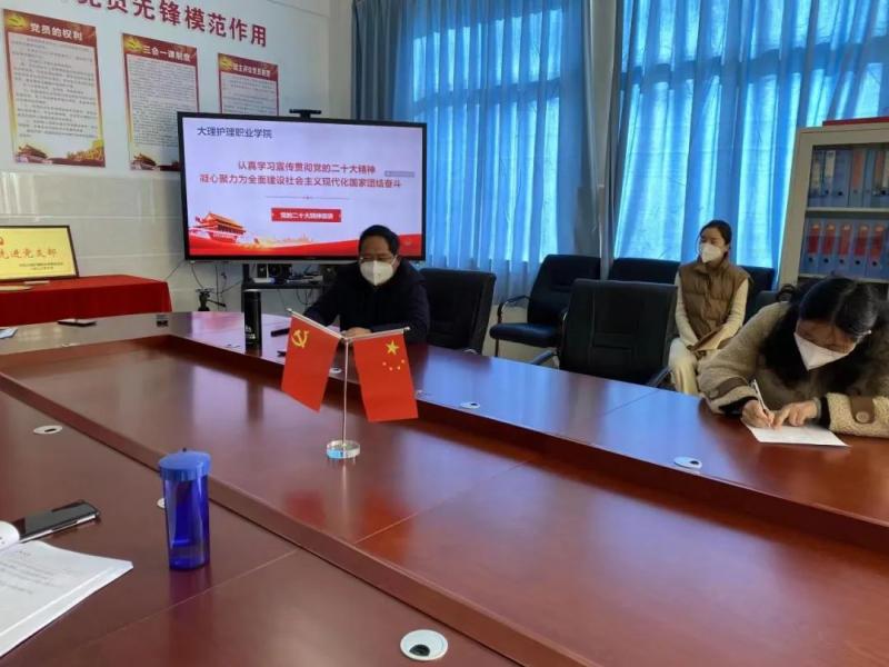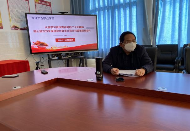 学习二十大,教育在行动。12月28日下午,新葡萄奔驰AMG官网党委宣讲团成员、党委委员、副院长郭向周同志深入护理系开展党的二十大精神宣讲。护理系党支部全体党员、全体专兼职教师参加了此次报告会,会议由党支部书记袁秀林同志主持。