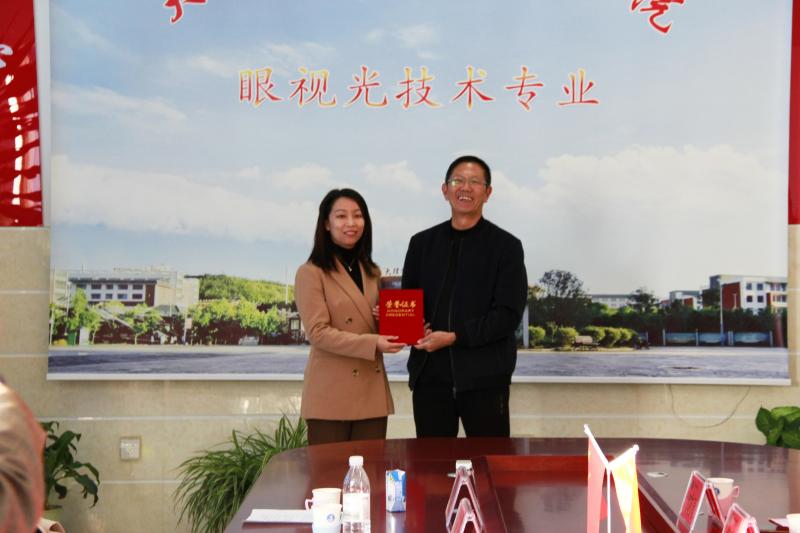 廖惠群书记与郑鹏经理为“普诺瞳角膜接触镜人才培养基地”揭牌;蔡德周院长向爱博诺德(北京)医疗科技股份有限公司颁发捐赠证书;郭向周副院长和邢菲主管签订了“校企合作”协议,并向徐俊锋经理和刘佳琪主管颁发“新葡萄奔驰AMG官网兼职教师”聘书。