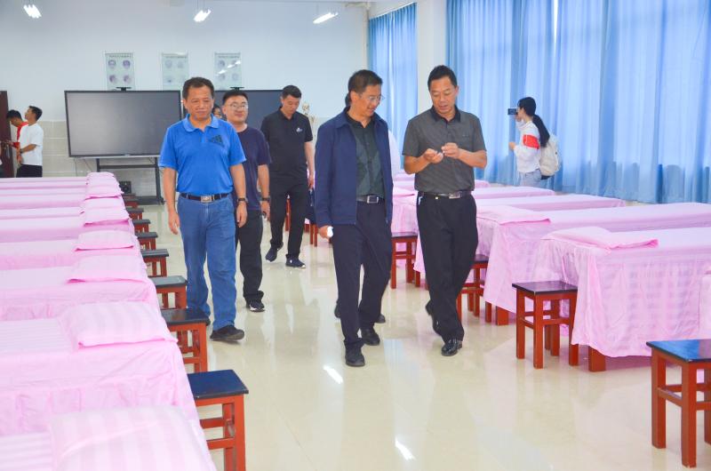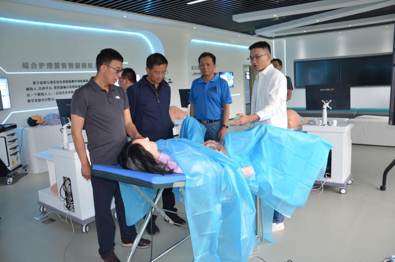 考察组一行先后考察了学校校园基础设施建设、学生宿舍、食堂、医学技术系眼视光技术实训基地、康复技术系中医康复实训基地和护理系虚拟仿真实训基地。