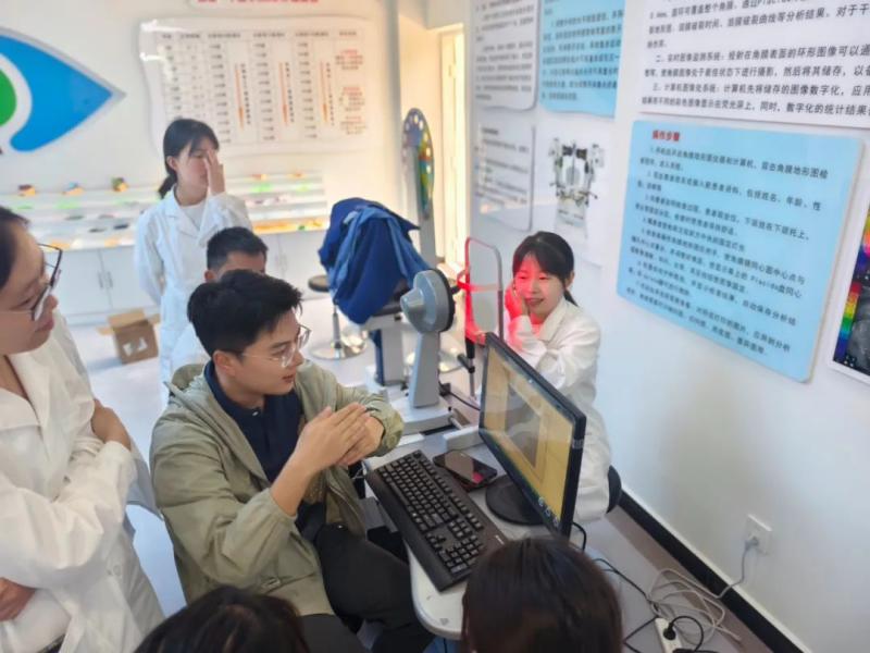 理论授课结束后,进行了角膜塑形镜验配的实操培训,在两位老师的指导下同学们积极动手操作,强化不同品牌塑形镜验配的注意事项,提高同学们的实践能力和解决问题的能力,熟悉工作流程和技能要求,为下一阶段进入实习做好准备。