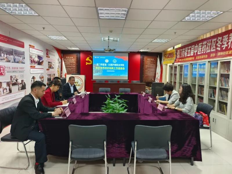 在厦门华医馆,詹董事长、马院长带领廖书记一行首先参观了思明区华医馆各科室布局及诊疗情况,详细介绍了华医馆的中医正骨、推拿针灸、中药调理、刮痧、拔罐、刺血、中药贴敷、艾灸、光波、药浴、牵引等传统医学诊疗特色。随后,就华医馆和学校从中职到高职合作15年来,在学生实习就业等方面进行了座谈。廖书记感谢华医馆多年来对新葡萄教育教学的支持和帮助,在国家大力发展大健康产业的时代背景下,学校将进一步深化和华医馆的合作和交流,着力办好新葡萄健康、养生、养老等大健康相关专业。