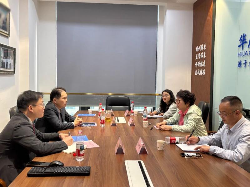 在华厦眼科医院集团总部,集团校企合作部负责人唐坤松副总监带领廖书记一行参观了医院门诊部、住院部各科室。先进的仪器设备、一流的医疗团队、规范的运营管理,廖书记一行见证了华厦眼科强大的实力。随后,双方进行了座谈交流,廖书记着重介绍了新葡萄眼视光技术专业良好的办学情况,期望下一步和华厦眼科医院集团开展深层次的全方位合作,将眼视光技术专业做大做强。唐坤松副总监详细介绍了华厦眼科医院集团校企合作情况和经验,集团副总裁张昊志就华厦眼科医院集团学科建设、校企合作、人才融合培养进行发言,表示下一步校企双方要把这次座谈合作意向落到实处,走深走实,做出成果。