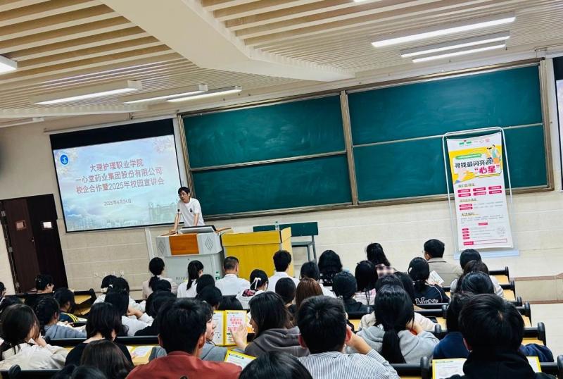 4月24日,学校邀请一心堂药业集团股份有限公司大理分部人事主管赵晓倩等企业家到学校进行2025年校园宣讲。基础医学部党支部书记段益顺、系主任郭太兵、康复技术系党支部书记朱海娟、实作实训部主任施骥文、药学专业负责人及药学2401班、中药学2401班全体学生参加了本次宣讲会。