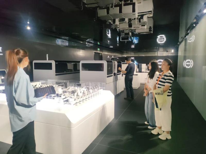 调研团队参观了迈克生物安和园区和大家检验实验室,了解了企业的发展历程和“我,即精准”的理念,重点参观了迈克生物全自动化学发光免疫分析仪、数字PCR系统等核心产品的研发与生产流程,观摩了智能化实验室流水线等先进设备。