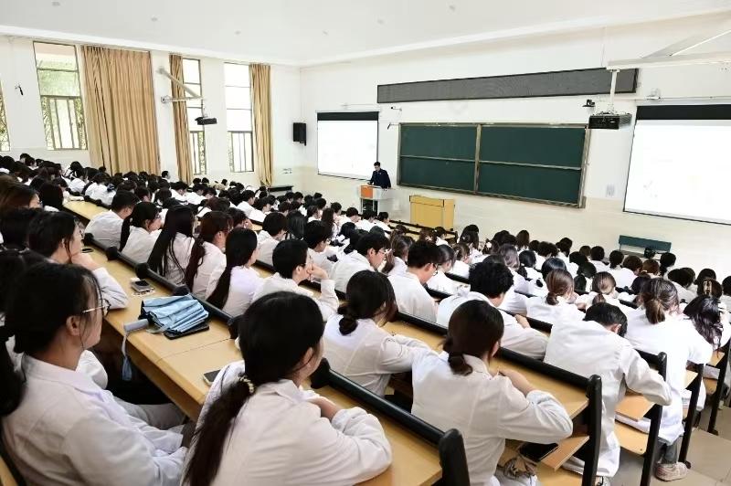 为帮助学生快速了解专业发展方向和新动态,吴笛经理和信嘉诚老师在第一阶梯教室对眼视光技术专业和视觉训练与康复专业学生进行专业启蒙教育。他们从视觉训练的发展历史,视光服务的内涵,视觉训练的应用和未来发展三个维度展开讲解,让学生清晰了解视觉训练的发展进程和学习内容,为未来职业技能提升和职业规划奠定基础。