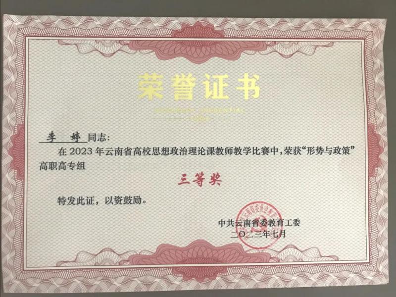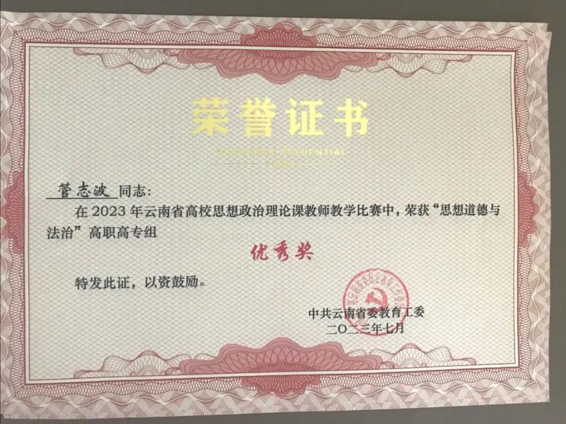 根据《中共云南省委教育工委关于举办2023年云南省高校思想政治理论课教师教学比赛的通知》要求,本着“以赛促教、以赛促学、以赛促改、以赛促建”的原则,马克思主义学院于五月下旬积极组织教师进行预赛,选拔出四名选手代表学校参加比赛。此次比赛由省委教育工委主办,云南农业大学承办,全省各个高校高度重视,积极参加,认真备赛。新葡萄参赛选手按照比赛相关要求精心备赛,在各组的比赛中均取得了良好的成绩,李婷老师在形势与政策高职高专组的比赛中荣获三等奖;张健月老师、管志波老师、杨晶露老师分别在毛泽东思想和中国特色社会主义理论体系概论组、思想道德与法治组、习近平新时代中国特色社会主义思想概论组的比赛中荣获优秀奖。