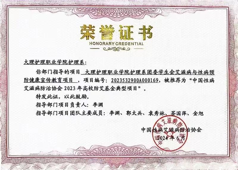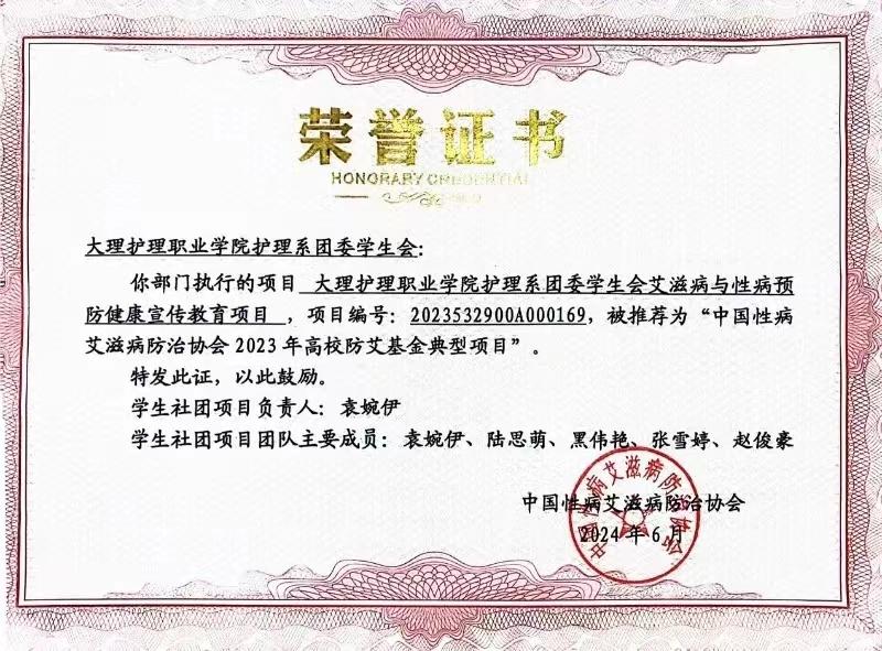 近日,由教务科、护理系指导,护理系团委、学生会执行的新葡萄奔驰AMG官网护理系团委学生会艾滋病与性病预防健康宣传教育项目被推荐为“中国性病艾滋病防治协会2023年高校防艾基金典型项目”。