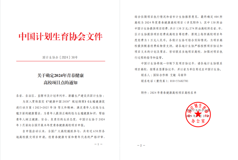 近日,中国计划生育协会发布《关于确定2024年青春健康高校项目点的通知》,新葡萄奔驰AMG官网“青春健康,携手同行”青春健康项目成功入选2024年青春健康高校项目。