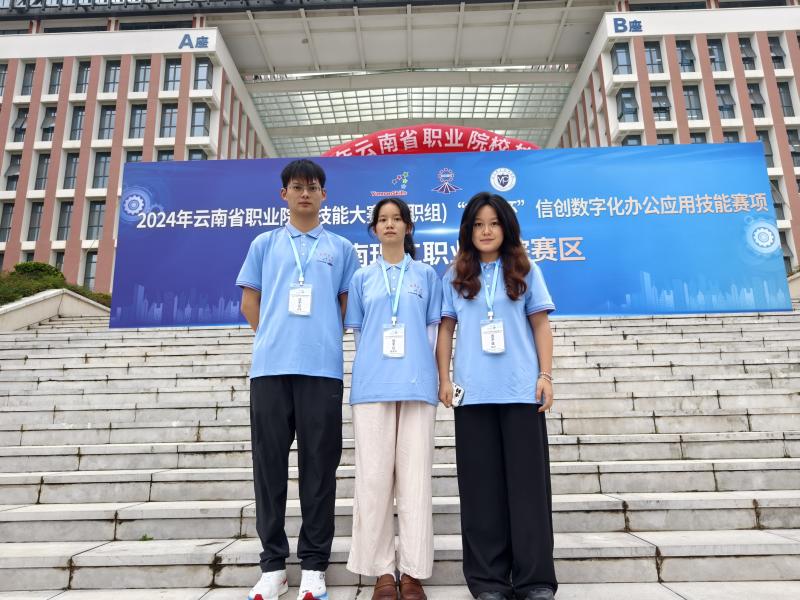 10月8日,新葡萄奔驰AMG官网学生参加由云南省教育厅主办、云南省职业技术教育学会协办、云南理工职业学院承办的2024年云南省职业院校技能大赛“高胜杯”信创数字化办公应用技能赛项(高职组)。来自全省37所高职院校的71个赛队213名参赛选手在这里同台竞技,一展风采。新葡萄3名学生:高富(护理专业)、陈彦苏(康复治疗技术专业) 、赵纯(视觉训练与康复专业)在潘智丹、舒敏老师的指导下,喜获“2024年云南省职业院校技能大赛信创数字化办公应用技能赛”项团体二等奖。