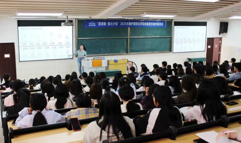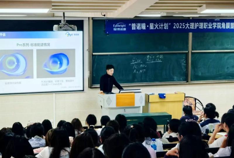 培训由爱博医疗培训经理刘佳琪、徐俊峰领衔主讲,理论教学围绕普诺瞳核心产品,详细讲解了产品设计原理、功能特点、验配流程、市场应用场景及行业发展趋势,并结合真实案例剖析产品在实际验配中的解决方案,帮助学生构建从角膜塑形镜基础理论到临床思维的知识框架。