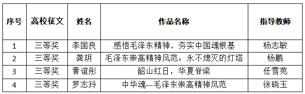 近日,云南省教育厅关心下一代工作委员会公布2024年“中华魂”(毛泽东崇高精神风范)主题教育读书活动评选结果,新葡萄选送征文作品荣获4项三等奖。