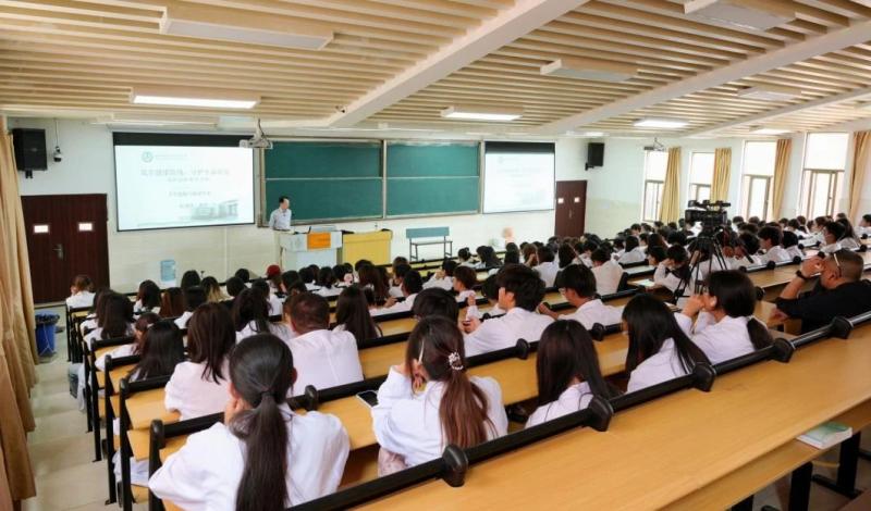 阮国洪教授则聚焦学生专业思想教育,以“水质健康与生命守护”为主题,为学生带来一堂生动的职业启蒙课。他通过案例解析水质污染对公众健康的影响,阐释了水质检验技术在疾病预防、生态保护中的关键作用,勉励学生树立“守护生命之源”的使命感。“选择医学专业,就是选择了一份对生命的敬畏与责任。”阮教授的讲解深入浅出,学生们深受启发、受益匪浅。