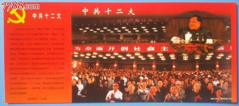 中国共产党第十二次全国代表大会于198291日至11日在北京召开。参加这次大会的正式代表1600人(出席开幕式1545人),候补代表160人(出席开幕式145人),代表着全国3965万党员。