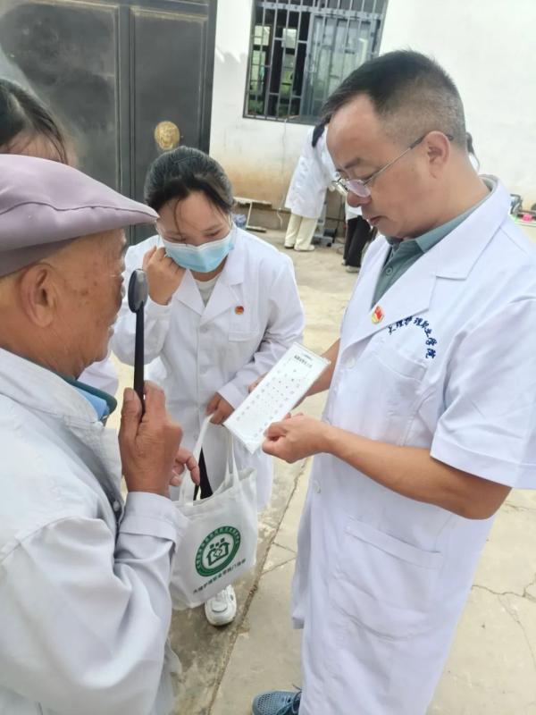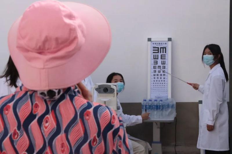 视力筛查组在新葡萄医学技术系主任王增源老师的指导下,为村民开展视力筛查,并对筛查结果进行耐心解释,传授爱眼护眼知识。