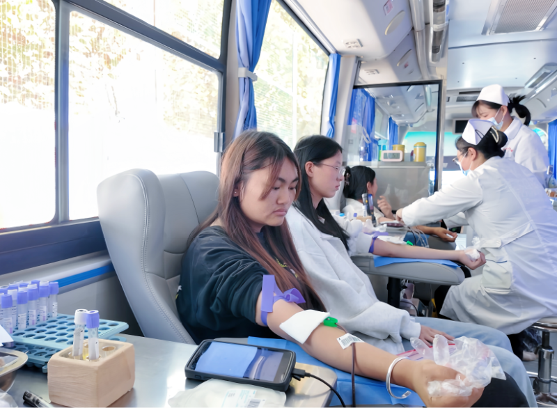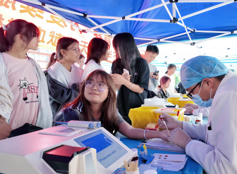 活动现场,秩序井然中透着令人动容的专业温度。作为未来的医护力量,学子们更懂得每一滴血液的珍贵份量。他们展现出超越年龄的医学素养和责任意识,提前调整作息,严格自查,以最佳状态进行登记、健康检查、血液初筛和血液采集等流程。当针头连接起青春的臂膀与冰冷的血袋,奔涌的不仅是287人的爱心和5.90万毫升的殷红希望,更是一份对生命至上的虔诚守护——是青春对生命的庄严献礼,是未来白衣天使们用热血写下的第一行誓言。