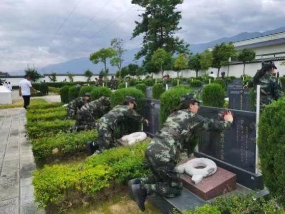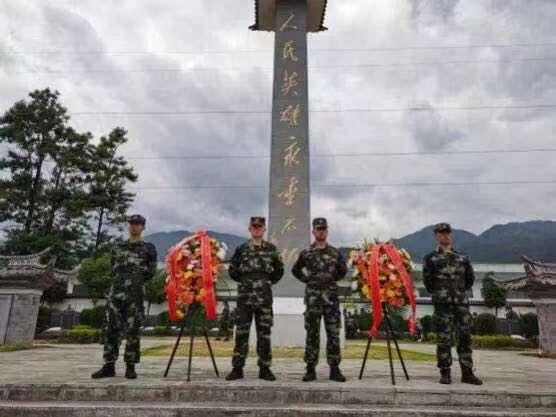 国旗护卫队、国防后备连大学生们来到大理市烈士陵园缅怀先烈,祭扫烈士墓碑,向人民英雄纪念碑敬献花篮。