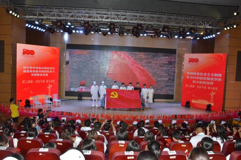 文艺汇演以“奋斗百年路 启航新征程”为主题,包括《开天辟地梦想起航》、《百折不挠奋斗进发》、《初心如磐再创辉煌》三个篇章。文艺汇演在师生歌伴舞《唱支山歌给党听》中拉开了帷幕。师生们通过歌伴舞、讲述红色故事、党史知识竞答、情景剧、舞台剧、朗诵、舞蹈、音诗画、百名师生大合唱等政治性、思想性与艺术性融为一体,精彩纷呈、振奋人心的文艺演出,再现了伟大的中国共产党艰苦卓绝的发展历程,波澜壮阔的革命道路;歌颂了伟大的中国共产党带领中国人民从站起来、到富起来、再到强起来的宏伟壮丽的英雄史诗。师生们用最美的语言、最真的情感、最动听的音符,深切表达对党的真诚赞美与深情热爱、对党的生日的诚挚祝福,抒发了全校师生炙热的爱党爱国情怀、奋发有为的豪情壮志,激励每一名师生不忘初心、牢记使命,一颗红心永远跟党走,将党史学习教育进一步走深做实,不断推进学院高质量发展,为实现中华民族伟大复兴努力奋斗。