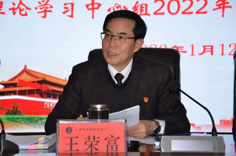1月12日,学院党委理论学习中心组举行2022年第一次集体学习。会议以“认真开好党史学习教育专题民主生活会,凝心聚力,推进学院高质量发展,以优异成绩迎接党的二十大胜利召开”为主题,深入学习贯彻习近平总书记在党的十九届六中全会、庆祝中国共产党成立100周年大会、党史学习教育动员大会、全国脱贫攻坚总结表彰大会上的重要讲话精神,认真学习《中共中央关于党的百年奋斗重大成就和历史经验的决议》、《中国共产党章程》、《关于新形势下党内政治生活的若干准则》、《中国共产党党内监督条例》、《以习近平生态文明思想为指引推动生态文明建设实现新进步》以及中央和省州党委关于开好党史学习教育专题民主生活会的有关文件精神。学院党委书记王荣富,党委副书记、院长蔡德周,党委专职副书记字利鹏,党委委员、副院长陈跃祥、石龙富,党委委员、宣传部部长李大文分别领学相关内容。学院党委书记王荣富主持会议并作总结讲话。