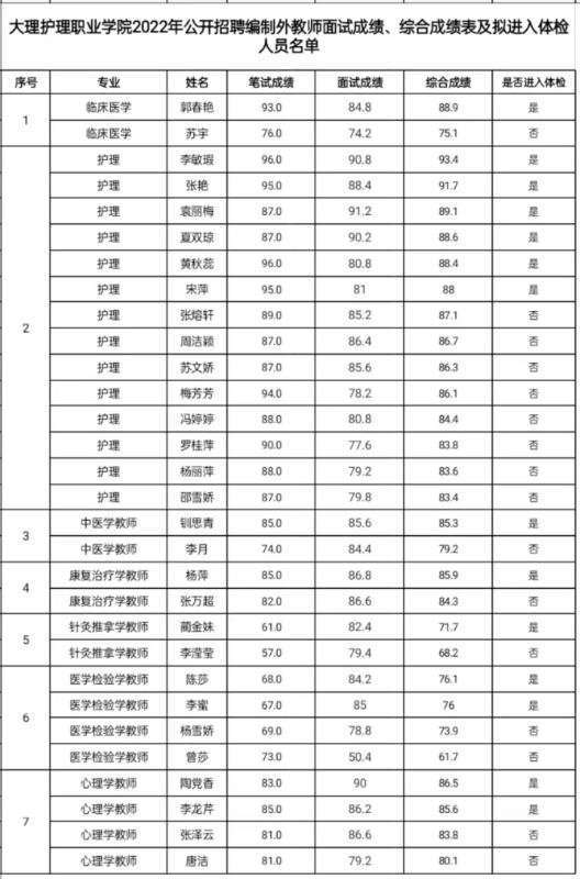 根据《新葡萄奔驰AMG官网2022年度公开招聘编制外教师公告》、《新葡萄奔驰AMG官网2022年编制外教师公开招聘考试考生须知》要求,新葡萄于2022年4月27日严格按照程序完成了临床医学教师、护理学教师、中医学教师、康复治疗学教师、针灸推拿学教师、医学检验教师、心理学教师7个岗位的面试工作,现将面试成绩、综合成绩及进入体检人员名单公布如下 (面试成绩、综合成绩表附后) :