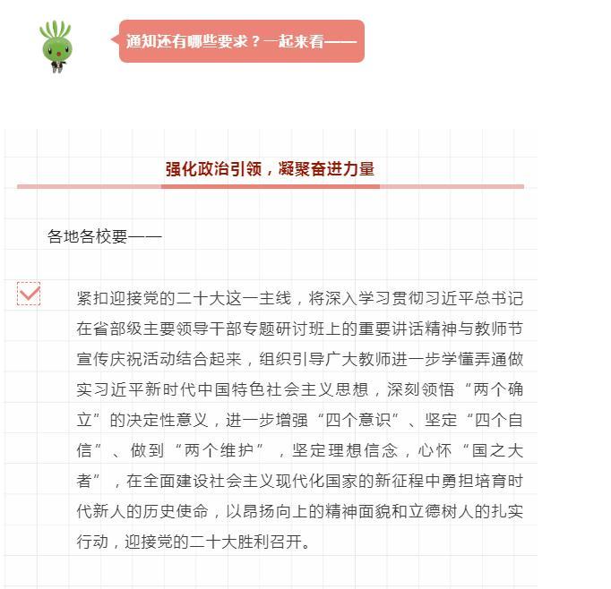2022年9月10日是我国第38个教师节,也是党的十八大以来第10个教师节。日前,教育部印发通知,部署做好庆祝2022年教师节有关工作。跟教育小微一起来看↓↓↓