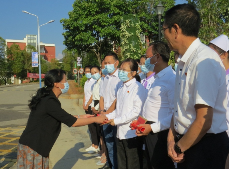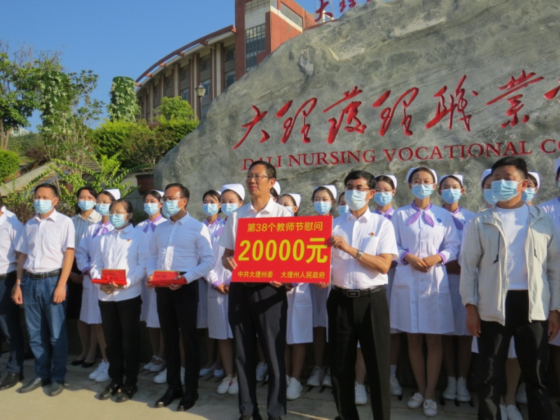 9月8日,在第38个教师节来临之际,大理州委副书记李琰、州人大主任张剑萍、州政协主席朱建斌,州教育体育局副局长张宝明一行到新葡萄奔驰AMG官网开展教师节慰问,向辛勤工作在教育教学一线的全校教师和教育工作者致以节日的祝福和诚挚的问候,为学校教职工、一线教师代表和退休教职工代表送上慰问金,希望全体教师进一步振奋精神、凝聚力量,以昂扬奋进的姿态迎接党的二十大胜利召开。