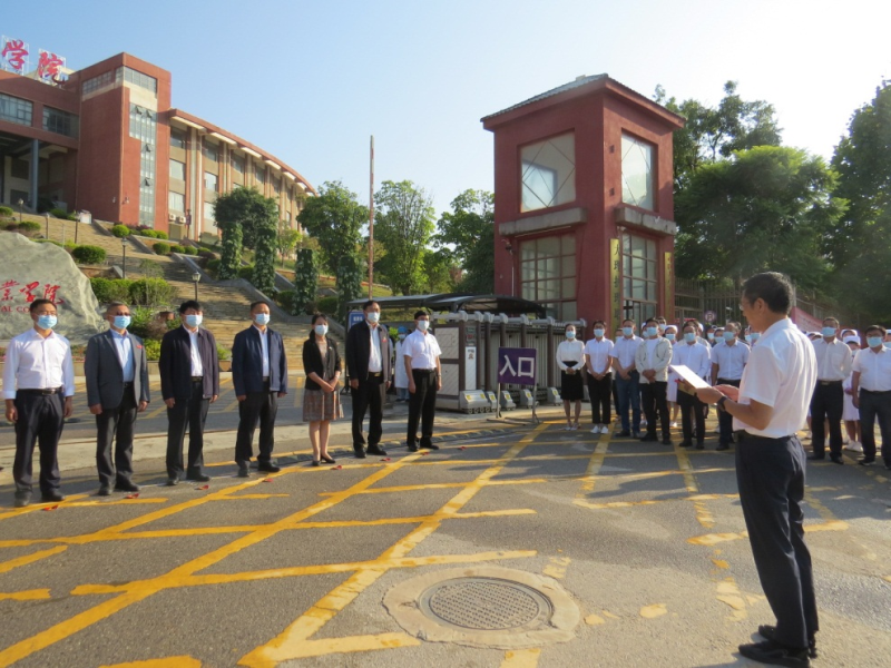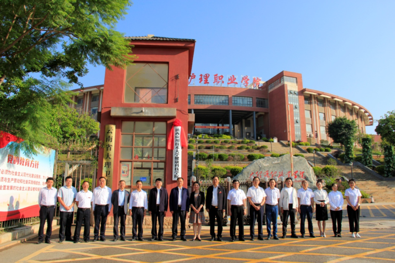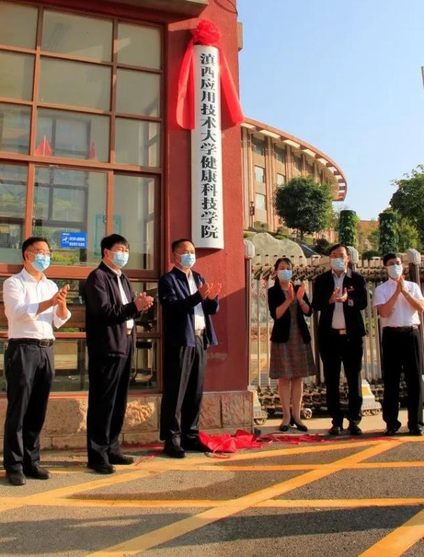 慰问结束后,州委副书记李琰、州人大主任张剑萍、州政协主席朱建斌、滇西应用技术大学党委书记罗进忠,州教育体育局副局长张宝明、学校党委书记王荣富为新葡萄奔驰AMG官网加挂滇西应用技术大学健康科技学院揭牌。揭牌仪式由学校党委副书记、院长蔡德周主持。