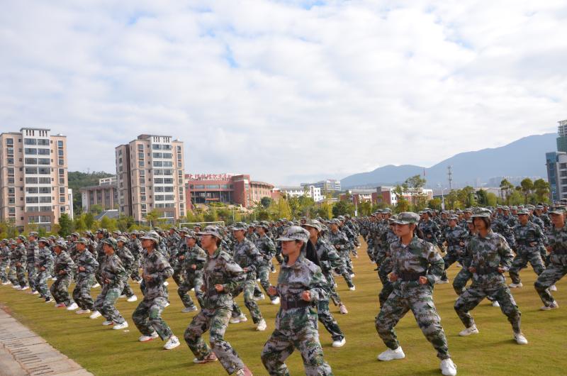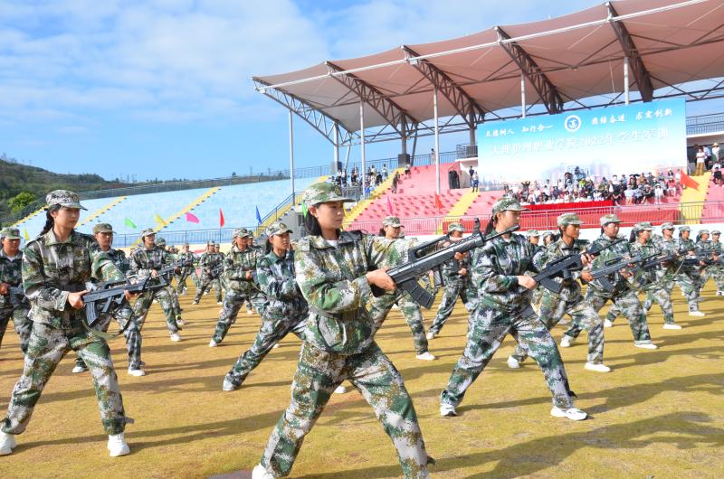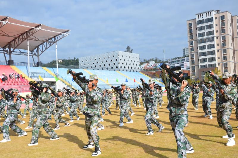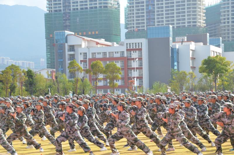 600名参训学生列队表演的刺杀操、拳术基本功和军体拳,动作划一、气势如虹,赢得现场师生阵阵喝彩。