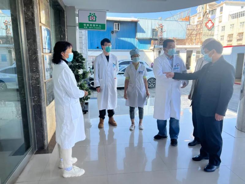 10月29日,省卫健委科教处李克林处长一行到新葡萄奔驰AMG官网门诊部开展住院医师规范化培训基层实践基地现场评估工作。大理大学附属医院吴学东副院长现场指导,门诊部党支部书记赵丽娟、副主任廖建东、华志贞和相关职能科室负责人参加了评估工作。