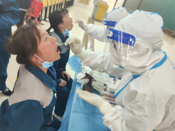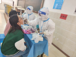“请大家按照班级检测点安排,排好队,保持一米距离,戴好口罩,提前准备健康码,依次进行核酸采样。”11月28日,在第二、三、四阶梯教室、食堂门口,学校组织医务人员分别对学生、教师、后勤服务人员进行了全员核酸检测采样。在全校师生的配合和学生科工作小组的引导下,各个检测点的核酸检测采样工作得以有序、高效的开展。