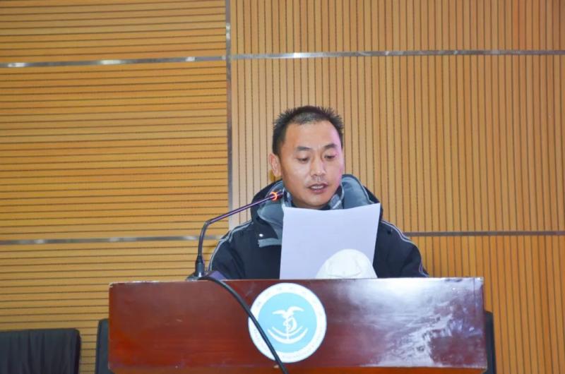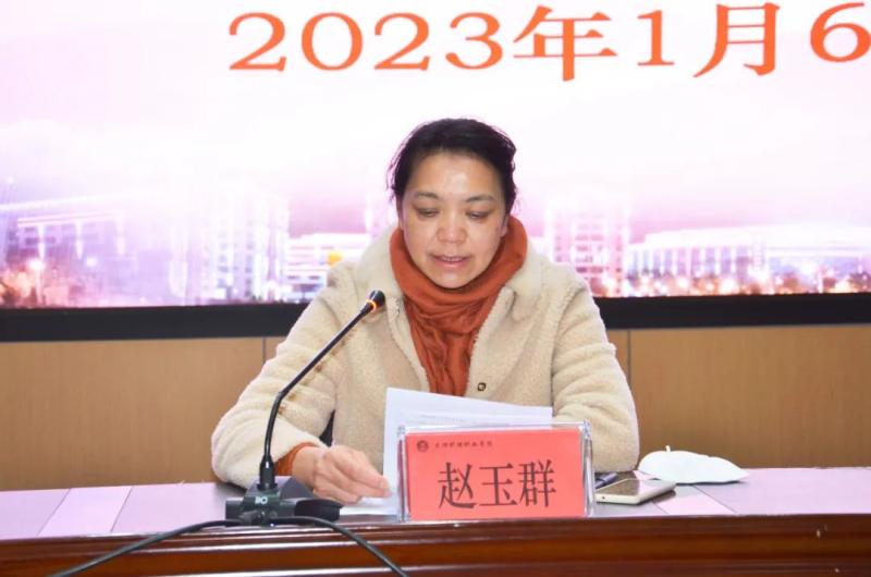 教务科主任赵玉群宣读《新葡萄奔驰AMG官网2022年度校教职工年度考核优秀评选条件》文件。