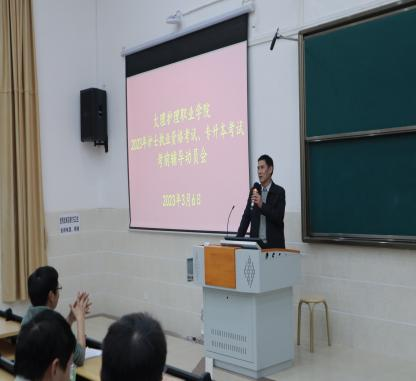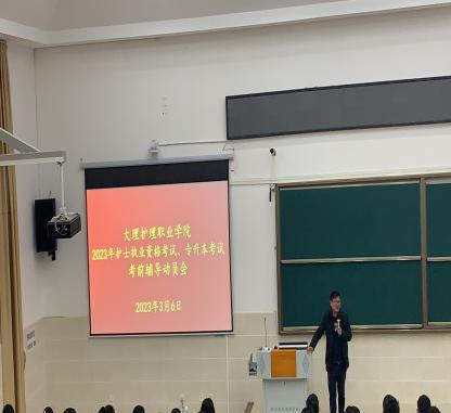 当晚,新葡萄奔驰AMG官网2023年护士执业资格考试、专升本考试考前辅导动员会在第一阶梯教室召开。会议由护理系郭太兵主任主持,教务科毕玉洮副科长、护理系党支部书记袁秀林同志参加会议。毕玉洮副科长强调了培训期间的学习纪律并做了要求,袁秀林书记对培训期间学生的生活、安全方面做了强调和具体要求。