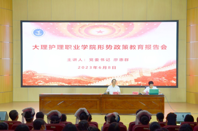 6月8日,新葡萄奔驰AMG官网召开形势政策教育暨民族文化报告会,开展书记校长同上一堂思政课、形势政策教育、民族团结教育、家风建设和师德师风建设党员干部及师生教育培训。学校党委副书记、院长蔡德周主持会议。